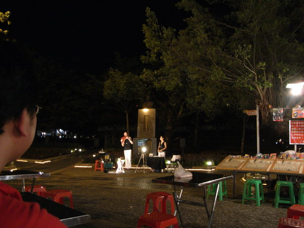 在公園裡找個座位坐下來慢慢吃,一邊還有很優美的排笛演出喔!